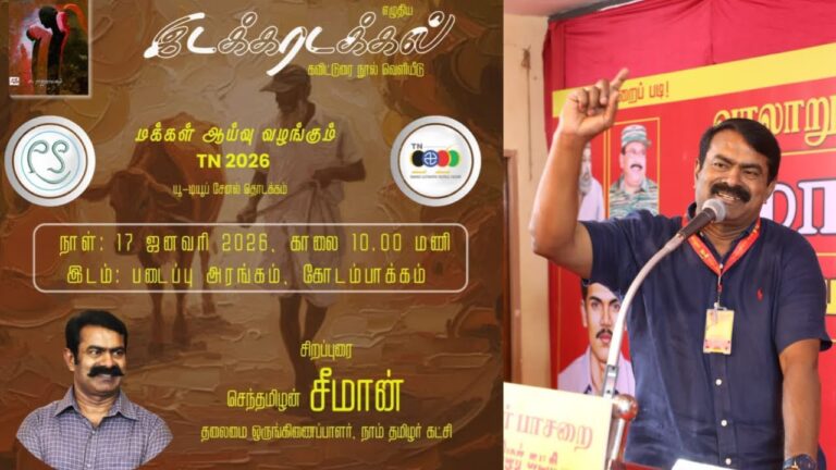 Contact Us To Add Your Business Subscribe our official Naam Thamizhar Katchi Channel and Get Instant Notifications on YouTube — நாம் தமிழர் கட்சி – இது மாற்றத்திற்கான எளிய மக்களின் புரட்சி! கட்சியில் இணைய : +91-90925 29250 / +044-4380 4084 துளித்துளியாய் இணைவோம்! பெருங்கடலாகும் கனவோடு! மாதந்தோறும் 1000 பேர் 1000 ரூபாய் 'துளி' திட்டம்: கட்சி வளர்ச்சி நிதி வழங்க: டச் வலைதளம்: வலையொளி: […]