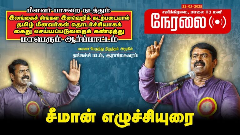 The post 🔴 22-03-2025 சீமான் எழுச்சியுரை – இராமேஸ்வரம் | மீனவர் பாசறை கண்டன ஆர்ப்பாட்டம் | தங்கச்சிமடம் LIVE appeared first on Nilgiris District - நீலகிரி மாவட்டம்.