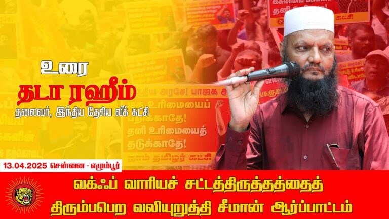 The post 🔴நேரலை 13-04-2025 வக்ஃப் வாரியச் சட்டத்திருத்தத்தைத் திரும்பபெற வலியுறுத்தி சீமான் ஆர்ப்பாட்டம் appeared first on Nilgiris District - நீலகிரி மாவட்டம்.