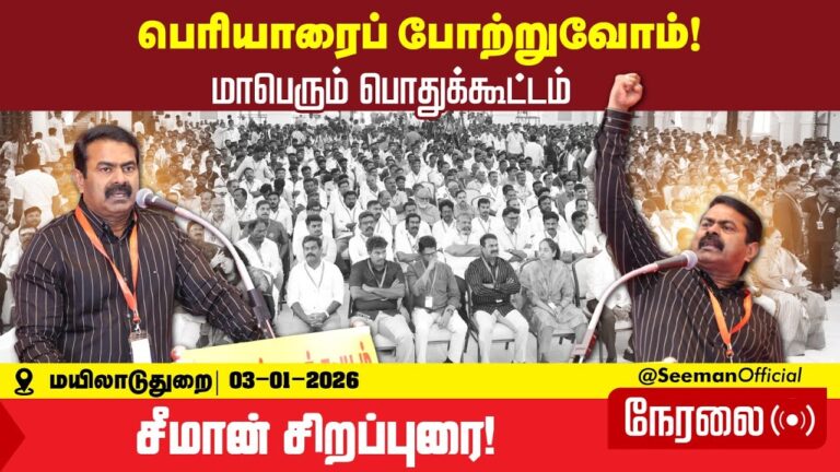 The post 🔴03-01-2026 மயிலாடுதுறை – சீமான் எழுச்சியுரை | பெரியாரைப் போற்றுவோம்| மாபெரும் பொதுக்கூட்டம் LIVE appeared first on Nilgiris District - நீலகிரி மாவட்டம்.